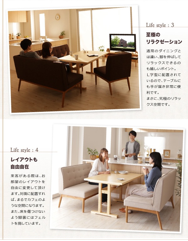 リビングソファとダイニングの両方を置くスペースが無いお部屋や、リビングソファのようにゆったりとくつろげるのに、