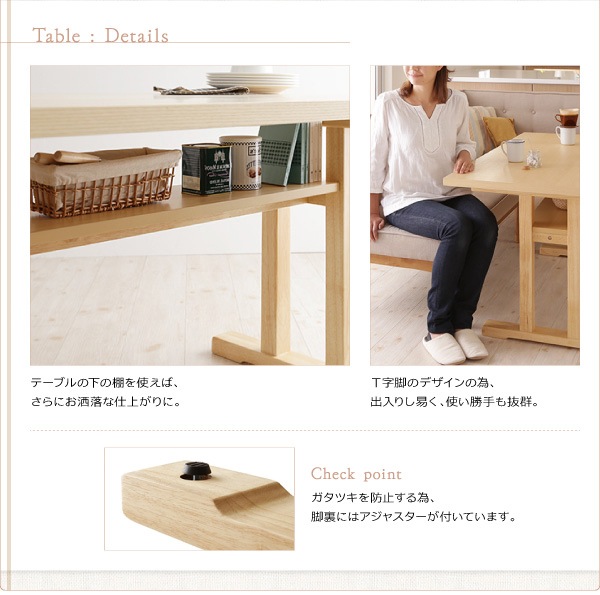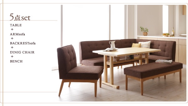 ダイニングテーブル、左アームソファ、バックレストソファ、ダイニングチェア、ベンチ