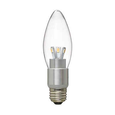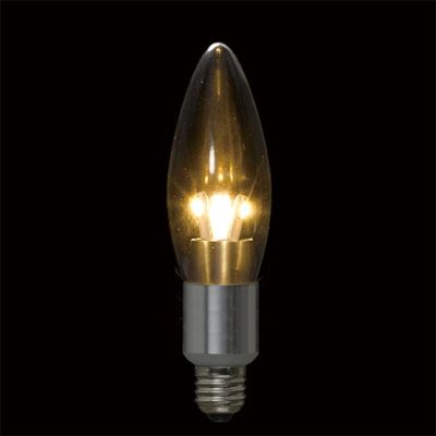 電球色相当のE17シャンデリア形LED電球。調光対応なので、お好みの明るさに調整可能です。定格寿命が40000時間と長く、消費電力も4Wしかないので、省エネです。従来の白熱器具に、そのまま使えるので安心です。全光束が230lmなので、E17口金の小形白熱電球の25W相当です。やや暗めなので、寝室や、ムードを演出するのに適しています。