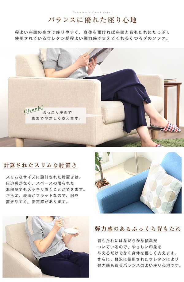 コンパクトなサイズの北欧風ソファなので、お部屋を広く演出できます。