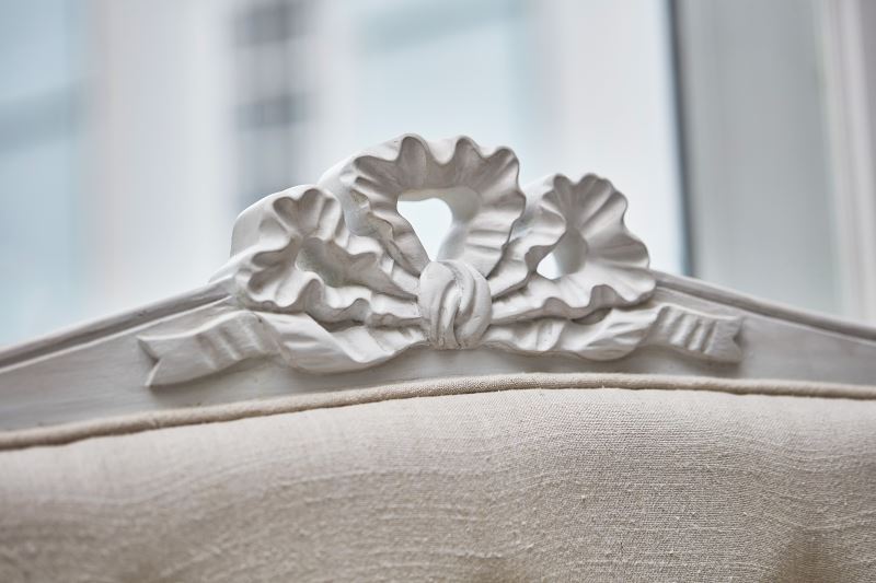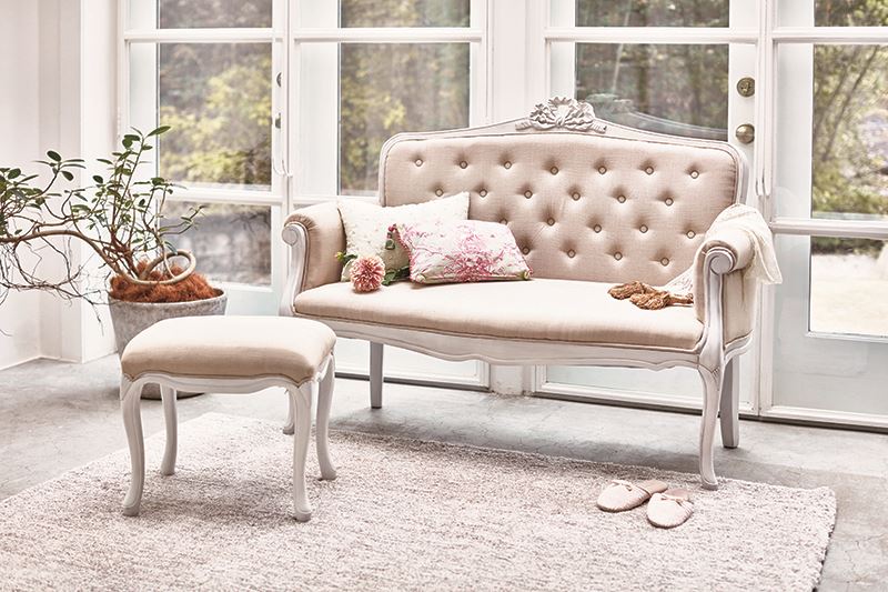 クラシック調の、エレガントで可愛らしいデザインの2人掛けソファ。