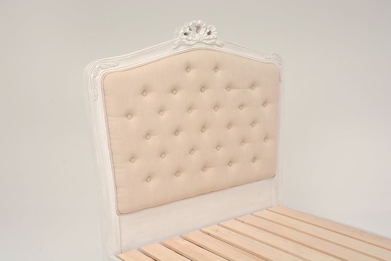 クラシック調の、エレガントで可愛らしいデザインのシングルベッド。