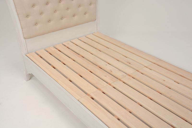 シングルベッドなので、コンパクトにお部屋がまとまります。床面には通気性の良い、すのこを使用。湿気をよく逃してくれます。また、セミダブルサイズのご用意もあります。