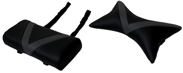 ヘッドと、腰部分にクッションが付いていて、腰部分のランバークッションは上下に最適な位置に調整可能。
