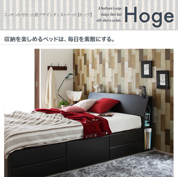 北欧風モダン チェストベッド『Hoge』ダークブラウン【ダブル/国産ポケットコイルマットレス付】コンセント付