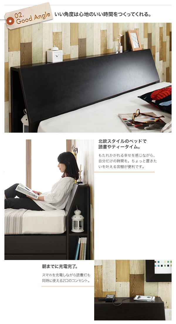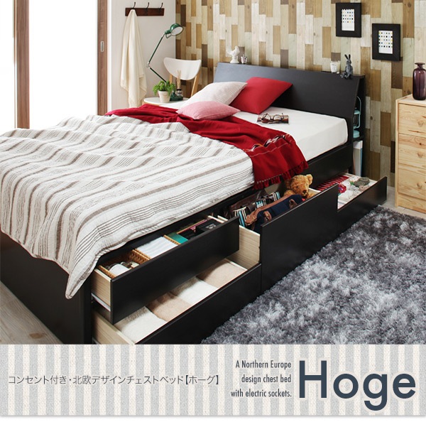 北欧風モダン チェストベッド『Hoge』ダークブラウン【シングル/国産ポケットコイルマットレス付】コンセント付
