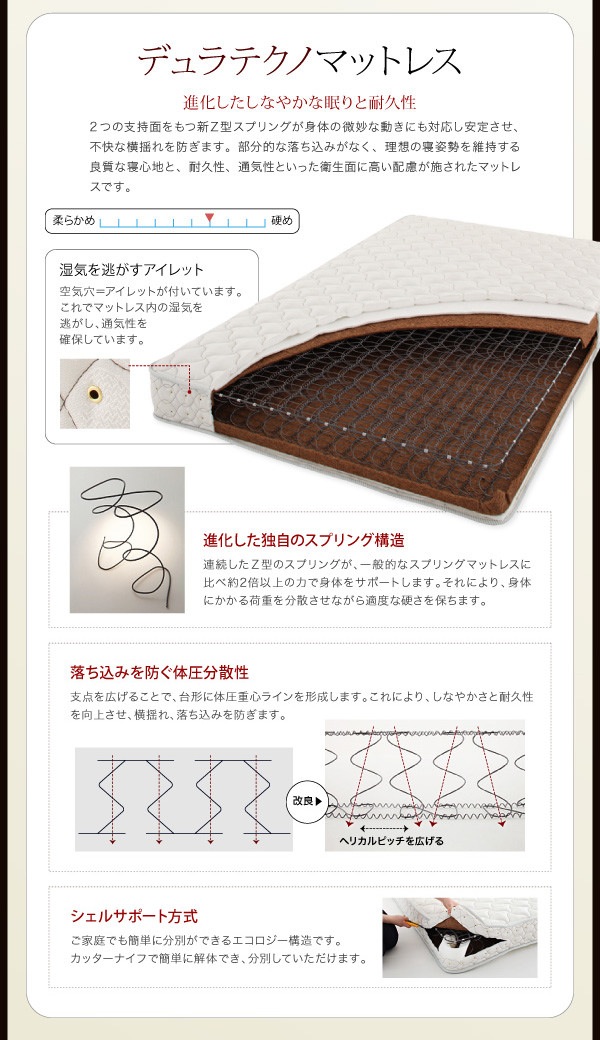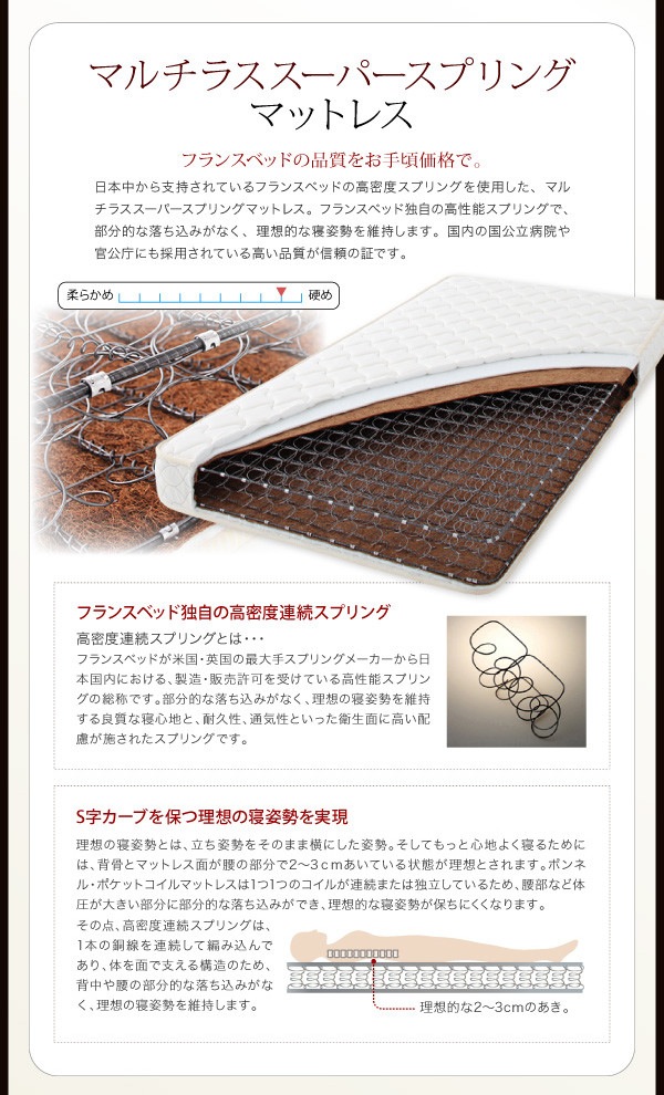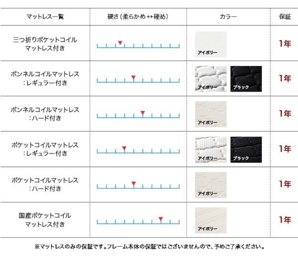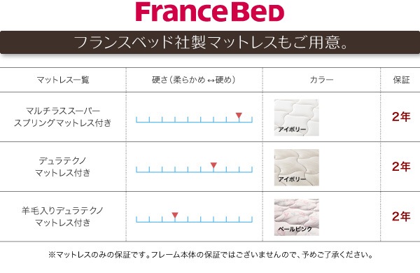 ※ベッドのフレームはスプリングマットレス使用時の基準で強度計算されております。