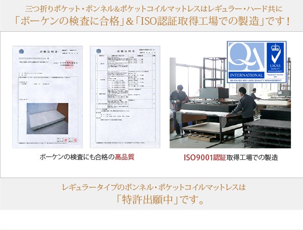 2.0mmポケットコイルスプリング(コイル数:756)、フェルト、ウレタン、綿100%、両面多針キルティング加工