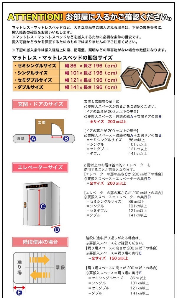 ・マンションにエレベーターがない場合、2階以上の配達希望はお客様にお手伝いをお願いする場合がございます。