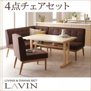 北欧風 リビング ダイニング 4点チェアセット 左アームタイプ『LAVIN』【ブラウン】ファブリック生地