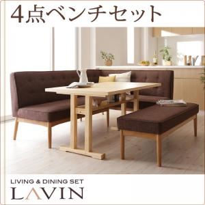 北欧風 リビング ダイニング 4点ベンチセット 右アームタイプ『LAVIN』【ブラウン】ファブリック生地