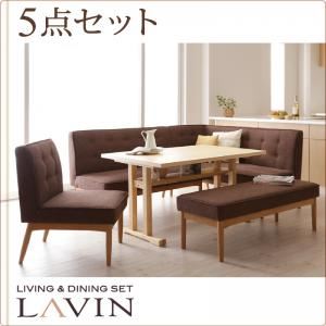 北欧風 リビング ダイニング 5点セット 左アームタイプ『LAVIN』【ブラウン】ファブリック生地