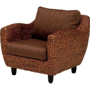 アジアン調 ソファ/アームチェア『ローズマリーシリーズ』【1人掛け ブラウン】肘付き ウォーターヒヤシンス