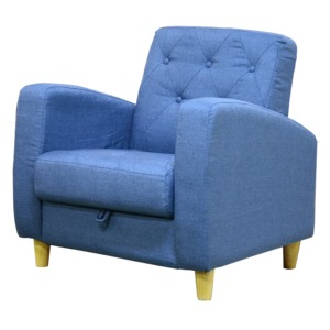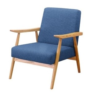 北欧風 ソファー【1人掛け ブルー】天然木フレーム 肘付き ファブリック地