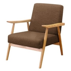 北欧風 ソファー【1人掛け ブラウン】天然木フレーム 肘付き ファブリック地