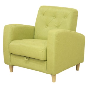 北欧風 コンパクトソファー ローソファー【1人掛け グリーン】座面下収納 肘付き ファブリック地