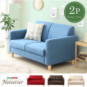 北欧風 コンパクトソファー/ローソファー『Noisetier』【2人掛け/レッド】肘付き ファブリック生地